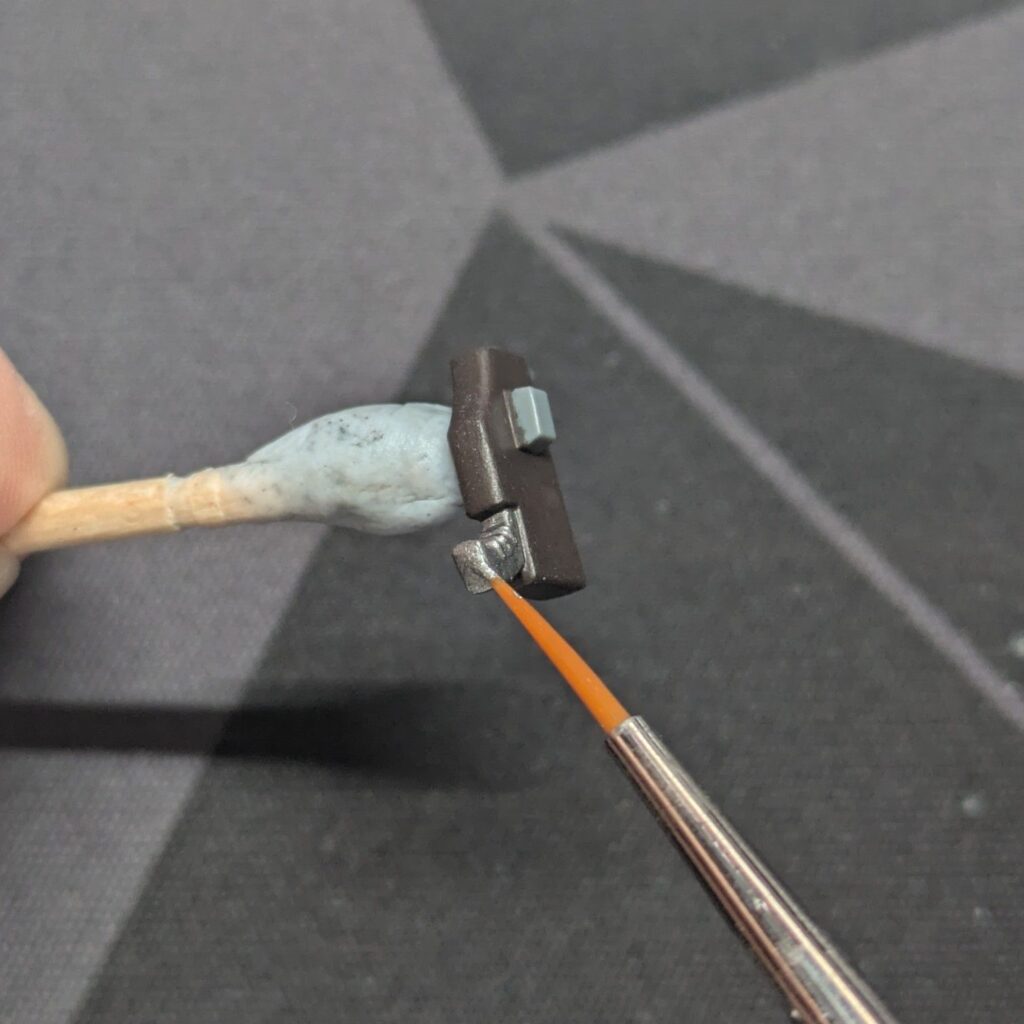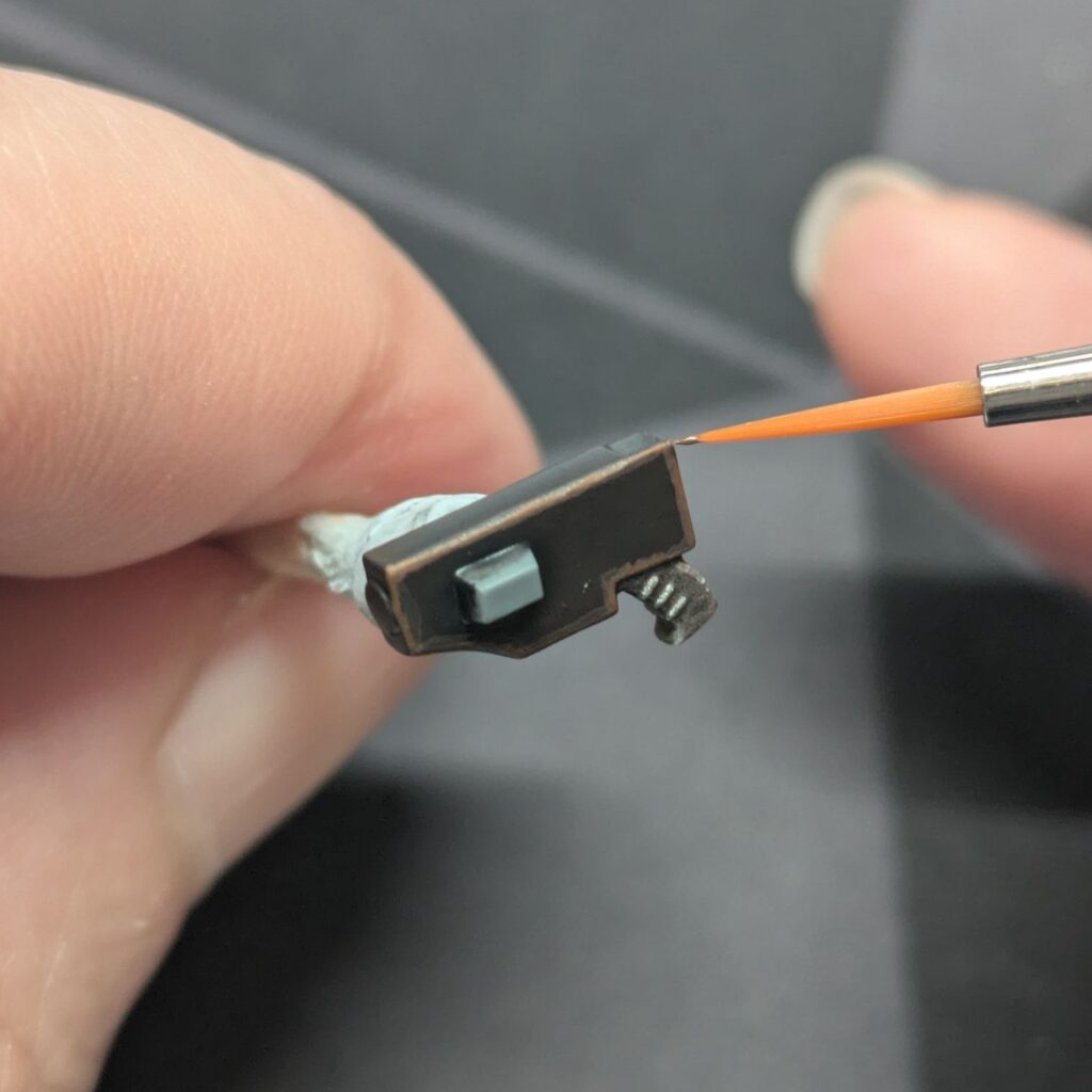 Stormhost Silverで銃の出っ張った部分やエッジだけに明るい銀色を細く乗せます。